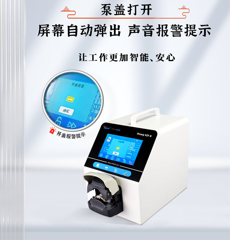 當(dāng)泵蓋打開時,ipump4ZF-B+FT15會自動彈出屏幕并進(jìn)行聲音報警提示。這一設(shè)計,旨在提醒用戶注意泵蓋狀態(tài),保證使用過程的安全性。不用再擔(dān)心因忘記關(guān)閉泵蓋而導(dǎo)致的意外情況。