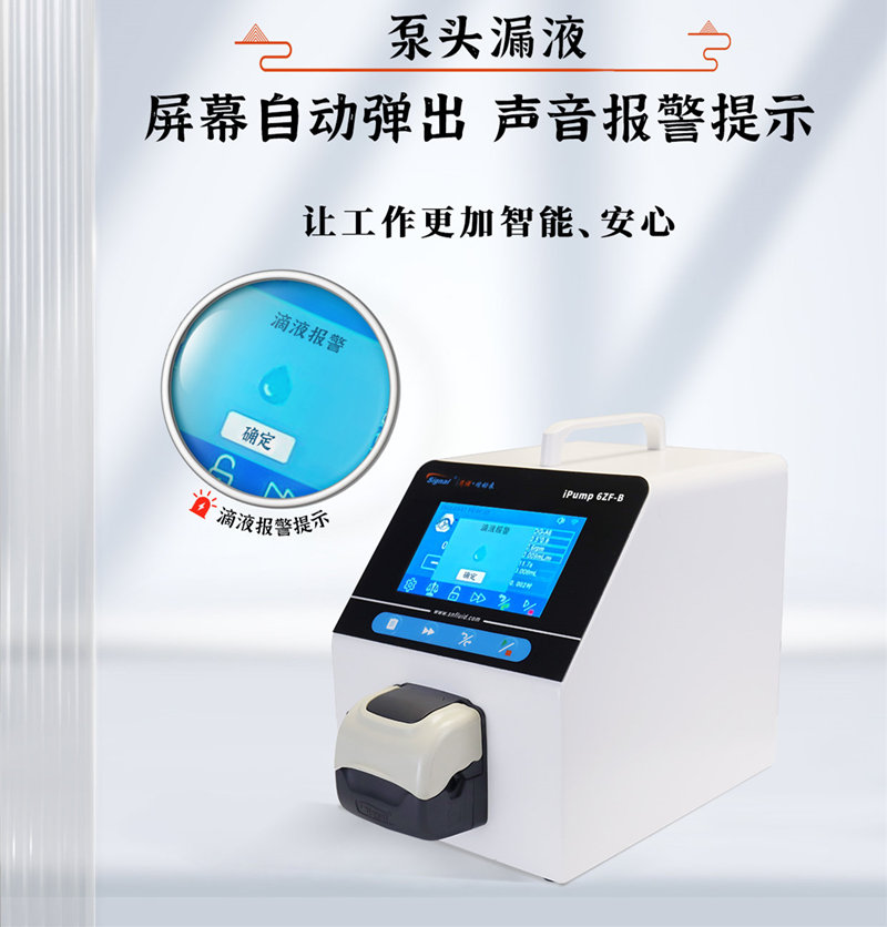 如果泵頭漏液,不僅浪費(fèi)了寶貴的液體資源,還可能對使用環(huán)境造成損害。ipump4ZF-B+FT15漏液報警功能,能夠及時檢測到漏液情況,并通過彈窗和聲音的組合方式進(jìn)行報警提示,幫助用戶及時采取措施,避免不必要的損失。